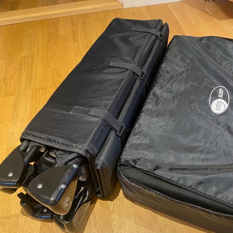 Både rejsesengen og madrassen er i god stand og brugt i et dyre- og røgfrit hjem.