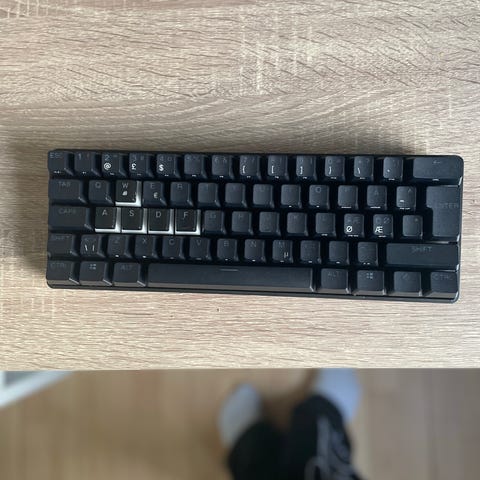 SteelSeries mekanisk tastatur i kompakt layout. Tastaturet er sort og har blå baggrundsbelysning, som kan ses mellem tasterne. Undersiden har udfoldelige fødder til justering af skrivevinklen. Velegnet til brug ved stationær computer eller bærbar, hvor der ønskes et lille mekanisk tastatur med lys i tasterne. Ny pris 2000kr