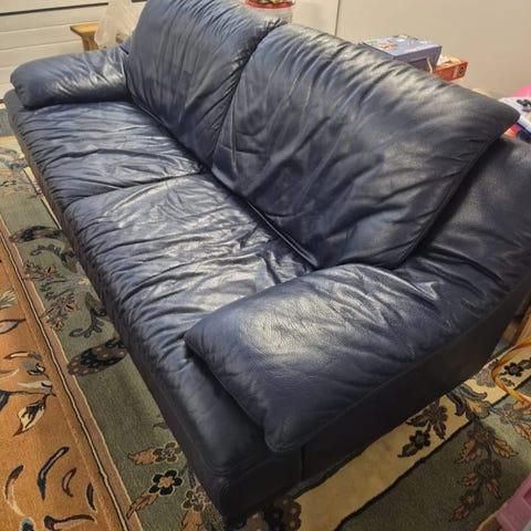 Sofaerne har almindelige brugsspor i læderet, men er stadig pæne og meget komfortable.
