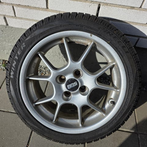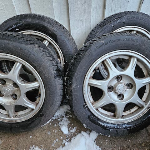 4 stk. originale Mazda MX5 fælge med dæk. En fælg har mindre skrammer.