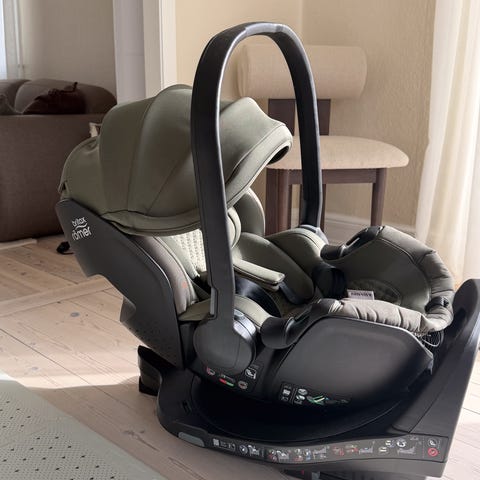 Stolen har 3 indstillinger for at læne sædet tilbage, og kan komme ret langt ned at ligge. Det har været rart for vores datter når hun har skulle sove på lange ture i bilen. Sædet kan også dreje 365 grader på basen.