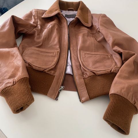 Biker jakke fra Gestuz i 100 % skind og foer i polyester. Overfladen er distressed dvs den er lavet så den ser ud som den har lidt patina. Fine lynlås detaljer foran og ved lommer. Den naturlig farve bløder jakken lidt op og gør den super anvendelig.