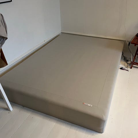 Cirka 10 år gammel boksmadras med meget få brugsspor. Altid stået varmt og tørt. Brugt af normalvægtig voksen. I perioder ikke brugt. Der er passet godt på den med regelmæssig støvsugning. Brugt med topmadras. Ingen pletter. Fra hjem uden dyr og røg :-)