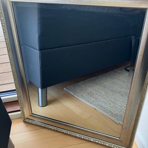 Stort spejl i sølvfarvet træramme