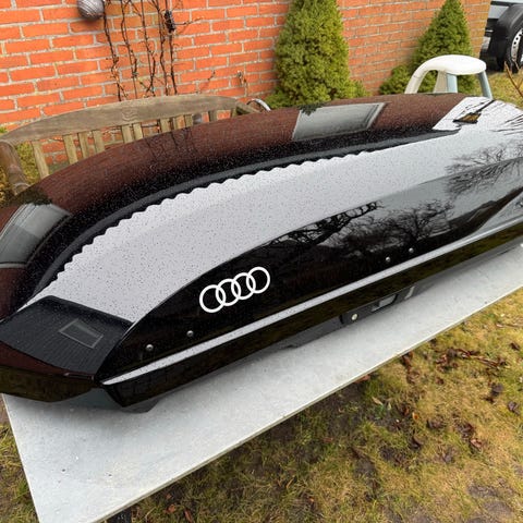 Thule Force XT LARGE tagboks med mulighed for åbning i begge sider. Rigtig fin stand med enkelte små brugsspor. Orig. Audi Tagbøljer som passer til bl.a. Audi Q5. Pris excl. Bøjler 2900 kr.