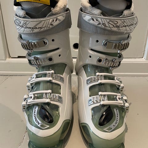 Super lækre Salomon S Pro 90w Custom Shell dameskistøvle med varme(styres fra app) Brugt 2 uger - ikke varmet/kan bootes. Hvid str.25/25,5