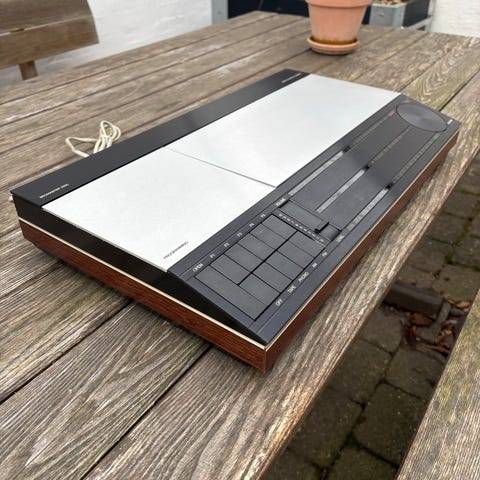 Et ikonisk B&O-anlæg fra slutningen af 1970’erne med touch-betjening og indbygget radio. Passer perfekt til vintage-setup eller sammen med Beovox-højttalere.