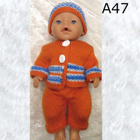 Sælger hjemmestrikket tøj til dukke på ca 43cm fx New born baby og Babyborn.