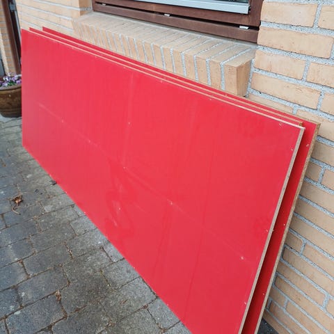 2 stk. spånplader bortgives. 250 cm lange, 85 cm bredde og 2 cm tykke. Har været brugt som bordplader.