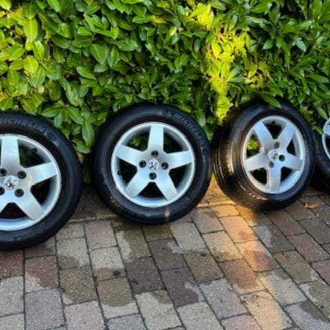 Fælgesæt med gode sommerdæk og org Peugeot hjulkapsler