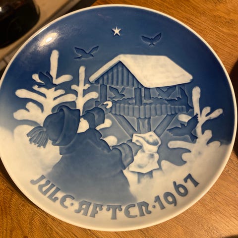 Bing & Grøndahl juleplatte Juleaften 1965 og Juleaften 1966 porcelæn blå-hvid