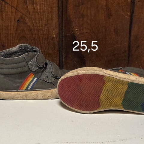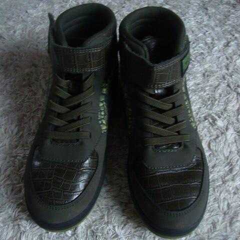 Nem velcro-lukning og elastiksnørebånd. Brugt, men i pæn stand-lyset på det ene sko virker perfekt, på den anden driller nogle gange. Men de er stadigvæk et hit hos dinosaurfan