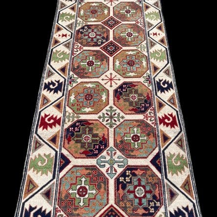 Afghansk Torkaman Shirwan håndkløbet tæppe af uld på bomuld, oprindelse Afghanistan, 85 x 292 cm, i meget velholdt stand og professionelt rengjort. Klik på den blå "gå til varen" knap, for at købe eller byde på denne vare. Den samlede pris vil blive vist inden du afgiver dit bud.