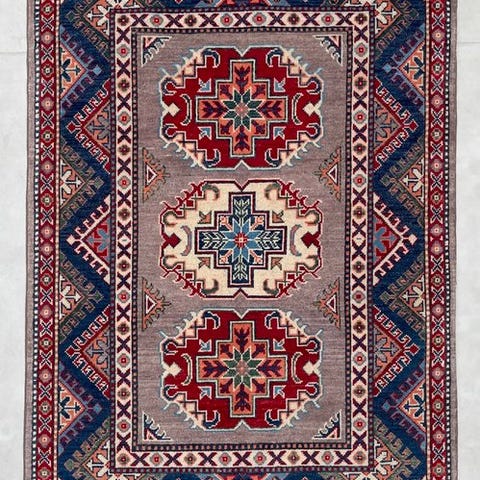 Ulden er af topkvalitet. Dette tæppe er knyttet i Afghanistan med uld af høj kvalitet.
