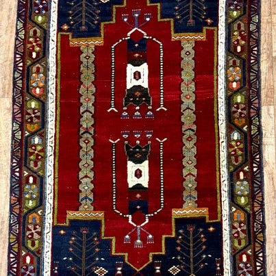 Tyrkisk håndvævet tæppe Anatol, mål cirka 204 x 108 cm, uld på uld, flerfarvet, i meget god stand. Klik på den blå "gå til varen" knap, for at købe eller byde på denne vare. Den samlede pris vil blive vist inden du afgiver dit bud.