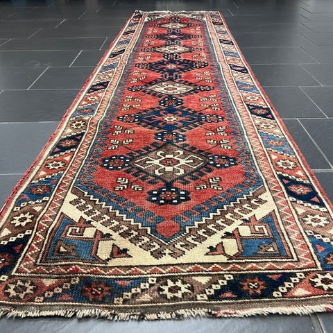 *Før ankomst til vores lager, renset hos et vaskeri specialiseret i håndknudede tæpper, derefter ikke brugt igen.