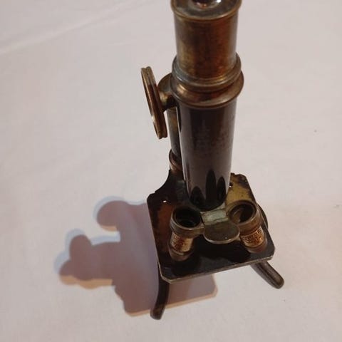 Ellis-typen kobbermikroskop fra Storbritannien, cirka 1750–1800, kaldet Aquatic Botanic, i god fysisk stand og ikke testet funktionelt. Klik på den blå "gå til varen" knap, for at købe eller byde på denne vare. Den samlede pris vil blive vist inden du afgiver dit bud.