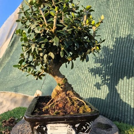 OLiven bonsai (Olea europaea), altidgrøn fra Spanien, Moyogi stil i fri opret position, træstamme 24 mm i diameter, dybde 26 cm, træhøjde 35 cm (kasser 21 cm bred, 14,5 cm dyb, 7,5 cm høj). Klik på den blå "gå til varen" knap, for at købe eller byde på denne vare. Den samlede pris vil blive vist inden du afgiver dit bud.