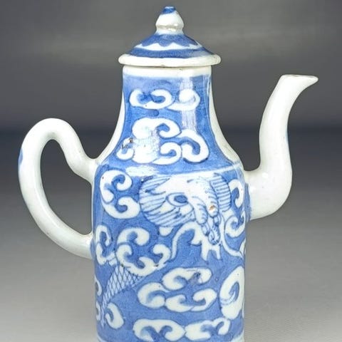 Lille blå og hvid kinesisk porcelæns vandpotte