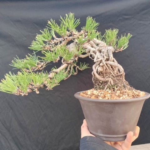 Pinus thunbergii bonsai, cirka 7 år gammel, eviggrøn, i en kinesisk keramisk potte med akadama, pumisse og lava, træets højde 36 cm, stammediameter 1 cm, potte 16 cm bred, 10 cm dyb og 5 cm høj, oprindelse Nederlandene. Klik på den blå "gå til varen" knap, for at købe eller byde på denne vare. Den samlede pris vil blive vist inden du afgiver dit bud.