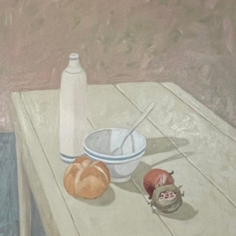 NICO NICOSIA, "Fantasia", 1998, blandet teknik på lærred, 70x100 cm, med ramme 75x105x3,5 cm, vægt 2 kg. På forsiden: underskrift nederst til højre. På bagsiden: titel, underskrift og år. Værket leveres med ramme inkluderet.