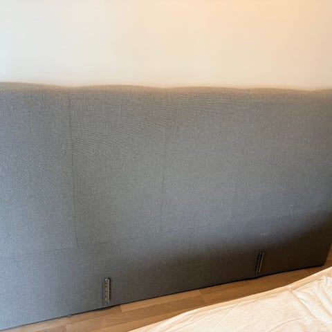 Sælger vores super flotte sengegavl med sider, den er Costume lavet og er i lys boucle, den er til en 160 seng og skal bare sættes rundt om den seng i har det er bare sider. Sælges på grund af flytning, derfor også den her pris