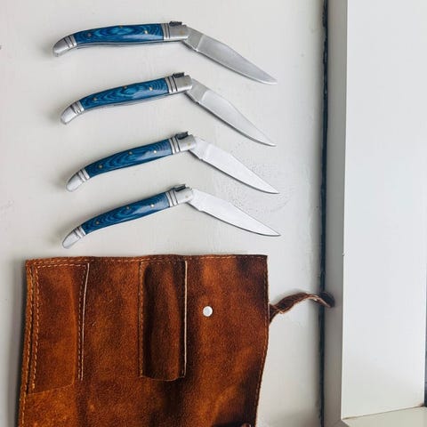 K. Romains 'L'Audacieux' er en enestående skabelse, en Laguiole-kniv der trodser konventionen og omdefinerer fremragende kvalitet. Denne sjældne mesterværk er et vidnesbyrd om håndværkerens urokkelige passion og innovative ånd, der udvider grænserne for traditionelt håndværk. Hvert eneste detail, fra det markante design til den præcisionskant, afspejler Romains urokkelige engagement i sit håndværk. Et ægte samlerstykke, 'L'Audacieux' er en fusion af arv og innovation, perfekt for den connaisseur, der værdsætter unikhed og fremragende håndværk. Dens sjældenhed og eksklusivitet gør den til en skat at beskue, et ægte investeringsstykke for den kræsen samler. Med en anslået værdi på €300 er dette kniv en sjælden mulighed for at eje et stykke kulinarisk historie. En sand dristighed, faktisk. Et must-have for den entusiastiske connaisseur, der