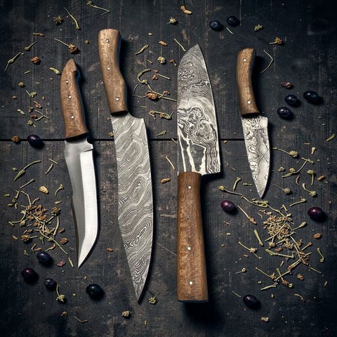 Set of FOUR, Hand-Forged with Old & Twisted Steel, Japanese Style Knives from...