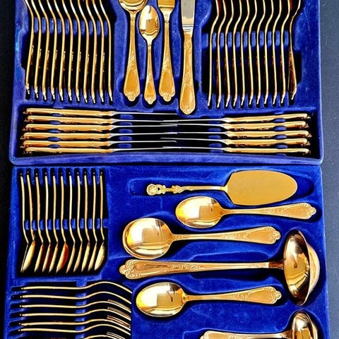 18/10 rustfrit stål, med en luksuriøs 23/24 karat guldbelægning tværgående kant