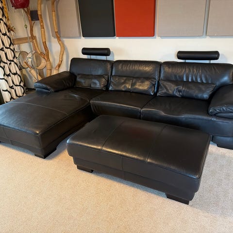 Sofa med chaiselong i cognacfarvet læder