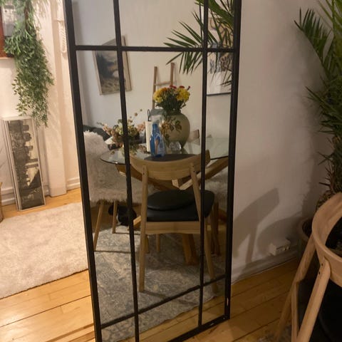 IKEA 160x70 cm spejl med rektangulær form og ramme i lyst træ. Velegnet som helkropsspejl til entré, soveværelse eller garderobe. Kan hænges på væg eller stilles op ad væg afhængigt af behov og plads. Neutral stil der passer ind i mange typer indretning.
