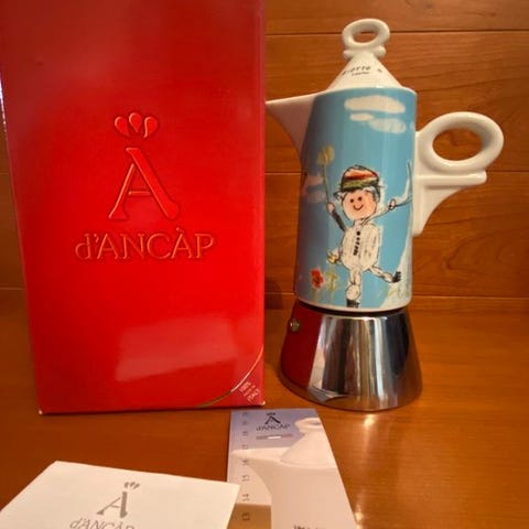 Nuova Kontessa 4 kopper, (Første udgave), kaffekande helt ny, aldrig brugt, billederne viser den nuværende stand.