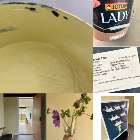 Jotun Lady Wonderwall maling i farven Fresh Pasta. Har en 9 L spand hvor mere end halvdelen er tilbage. Har købt den i Jotun forhandleren Colourplus.