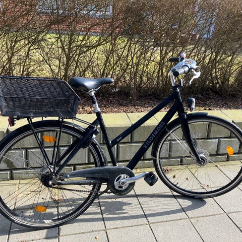 Cyklen har lav indstigning og er velegnet som hverdagscykel. Udstyret med kurv foran og bagagebærer med kurv bagpå, som giver ekstra opbevaringsplads til indkøb eller tasker. Styret er udformet til oprejst og komfortabel kørestilling. Farven fremstår lys/lilla i metalstel med sorte kurve, dæk og skærme.