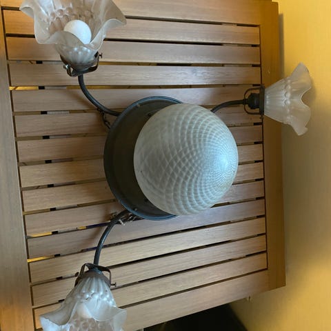 Smuk loftlampe i glas som virker fint. To elpærer medfølger.