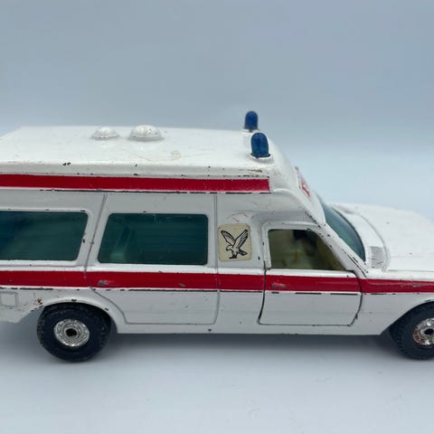 Corgi Major Toys 1143, Aerial Rescue, amerikansk brandbil, bagstyre brandmand og sæde er løs og rat knækket, pæn stand se billeder