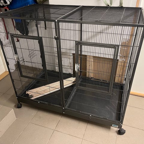 Bur i metal til smådyr i sort. Består af gitterelementer, der kan samles til en åben løbegård eller et bur med sider og bagvæg. Egnet til mindre kæledyr som f.eks. gnavere, hvor der er behov for et afgrænset område indendørs. Metalristen giver god ventilation og overblik over dyret. Kan adskilles igen for nem opbevaring.