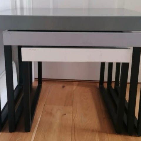 Indskudsborde i genbrugstræ og stål. Designet og lavet af “Raw Nordic Design”