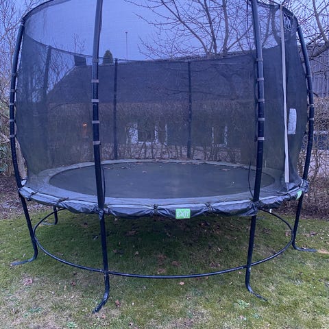 Rektangulær trampolin til haven P Linderg 305x518 cm. Sikkerhedsnet og sikkerhedskant skal skiftes. Dugen er fin. Stige medfølger.