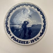 Talleren er dekoreret med blå nuancer og har et klassisk design med påsketema. Den er lavet af keramik.,Bemærk at mail, chat og beskeder ikke besvares, og varen skal købes på knappen "Gå til varen"