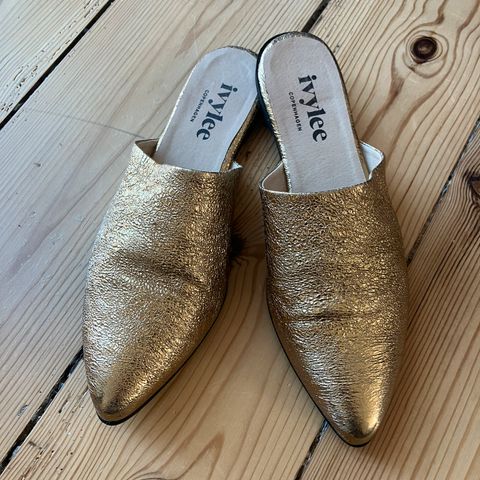 Flotte guldsko fra Nature med den fine fodform. Skoene har snørrebånd og en hvid/meleret sål. Jeg må desværre konstatere - efter én gang at have haft den på, at de er for små til mig. 😏