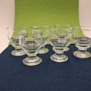 AI tekst: Sættet består af klare glas med et elegant design og en bred fod. Glassenes former er let buede, hvilket giver dem et stilfuldt udseende. Godt til dessert eller drinks.,Bemærk at mail, chat og beskeder ikke besvares, og varen skal købes på knappen "Gå til varen"