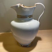 Kanden er af hvidt porcelæn med en sort håndtag og låg.,Bemærk at mail, chat og beskeder ikke besvares, og varen skal købes på knappen "Gå til varen"
