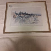 Billedet er indrammet med en sølvfarvet ramme og viser en akvarellignende stil.,Bemærk at mail, chat og beskeder ikke besvares, og varen skal købes på knappen "Gå til varen"