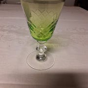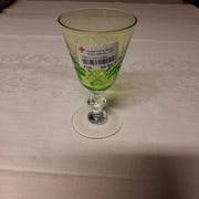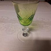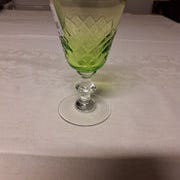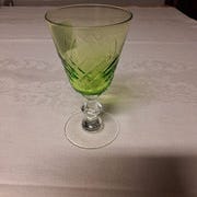 Glasset har en elegant form med en diamantmønsteret udsmykning. Det er lavet af klart glas og har en grønlig nuance.,Bemærk at mail, chat og beskeder ikke besvares, og varen skal købes på knappen "Gå til varen"