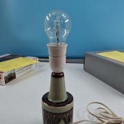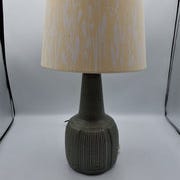 Lampens fod er i keramik med struktureret overflade. Den har en simpel form.