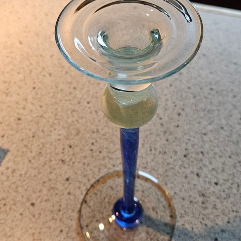 Utrolige smukke Mundblæst lysestage i klart glas med blå krave.