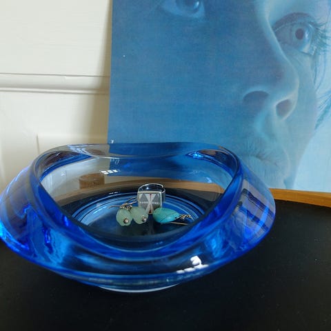 Bring & Grøndahl Skålen u/ låg er dekoreret med faldende blade, der skaber en efterårsstemming. Designet af kunstmaler Ove Julius Larsen. Stellet er produceret fra 1942 til 1987 Det er i Art nouveau-stil og har en underglasur-stel, hvilket gør det holdbartog tåler opvaskemaskine. Farvener sart lyseblå/blågrå baggrund. No. 94,Bemærk at mail, chat og beskeder ikke besvares, og varen skal købes på knappen "Gå til varen"