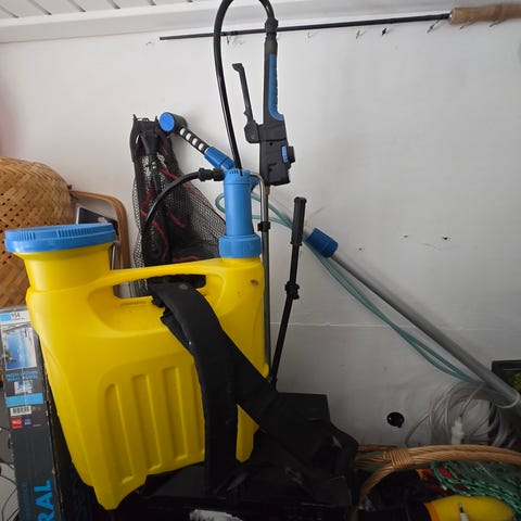Rygsprøjte i gul plast med manuel pumpefunktion. Sprøjten bæres på ryggen med justerbare seler og har slange samt sprøjtelanse i plast/metal. Egnet til udbringning af vandbaserede væsker som f.eks. have- og plantesprøjtemidler. Velegnet til brug i have og mindre udendørsarealer, hvor der er behov for manuel sprøjtning.