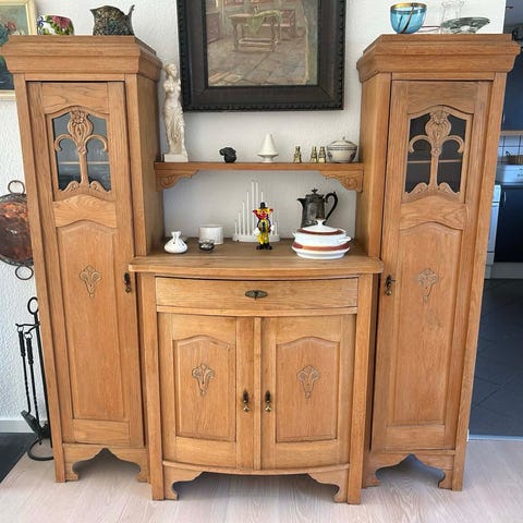 Vitrineskab og skænk i træ hvidlaseret
